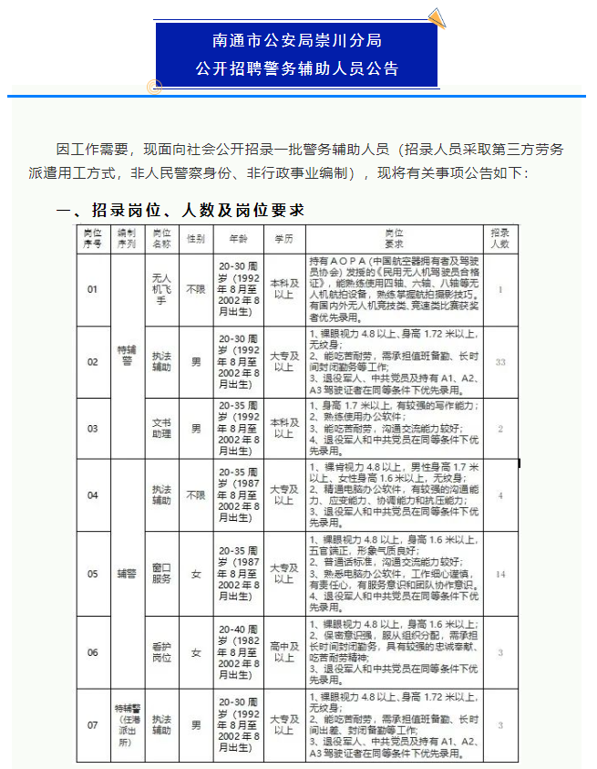 南通公安局招聘!男女有岗!速看!