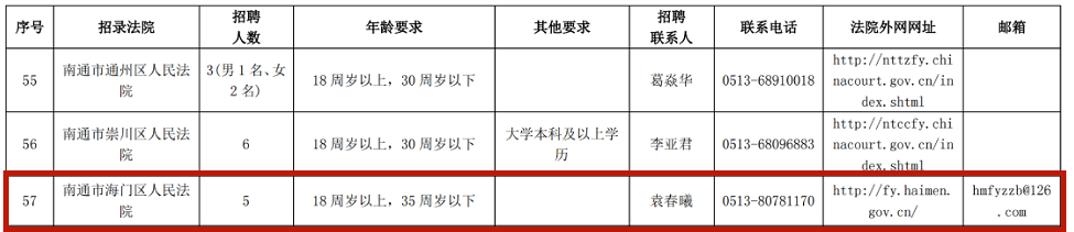 因审判工作需要,海门法院决定面向社会公开招聘聘用制书记员。现将有关事项公告如下: