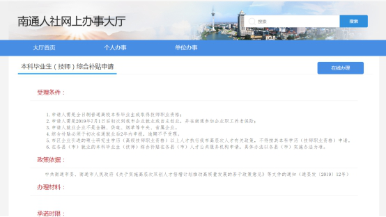 2.综合补贴申报网址:南通人社网上办事大厅(网址:www.nthrss.cn)